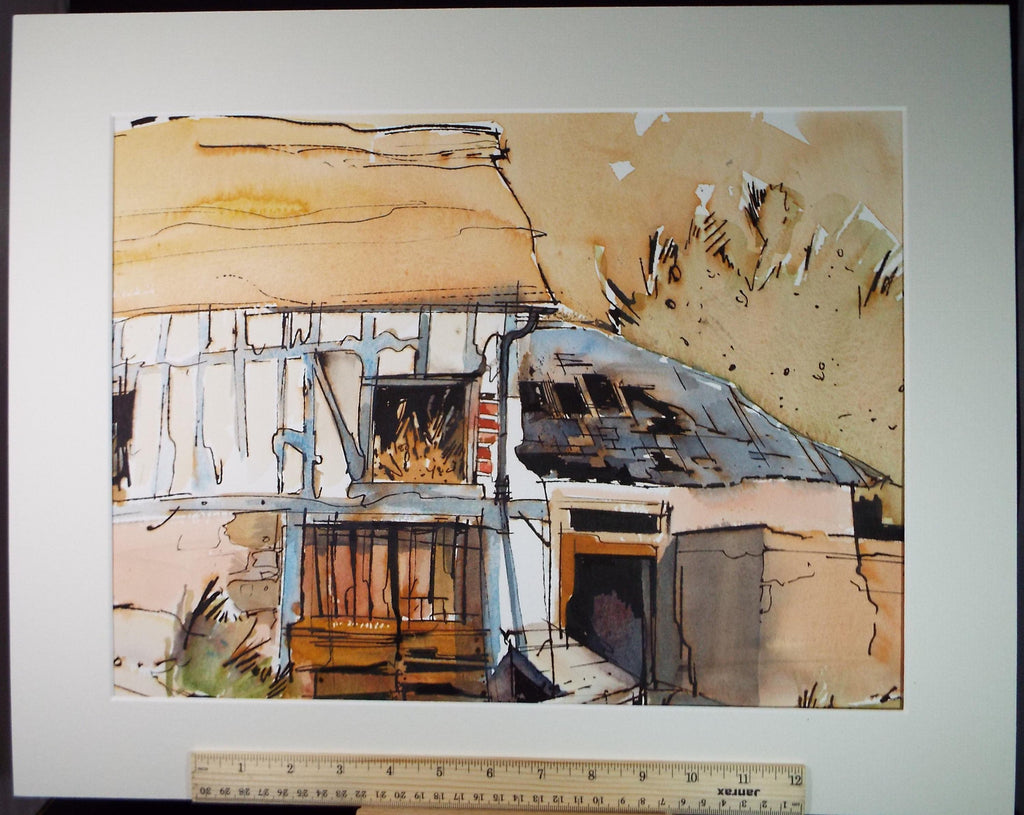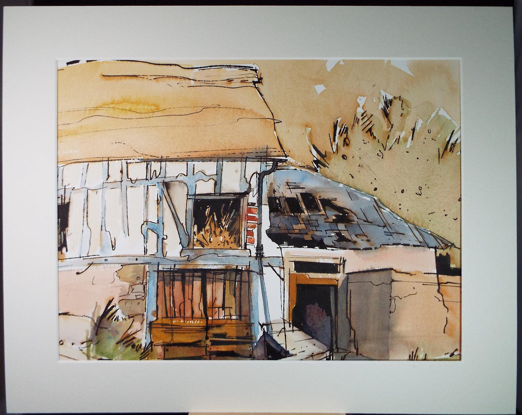 Original Watercolour drawing, 'French Barn', John Hambleton Holdcroft (1926-2014), Circa 1970's