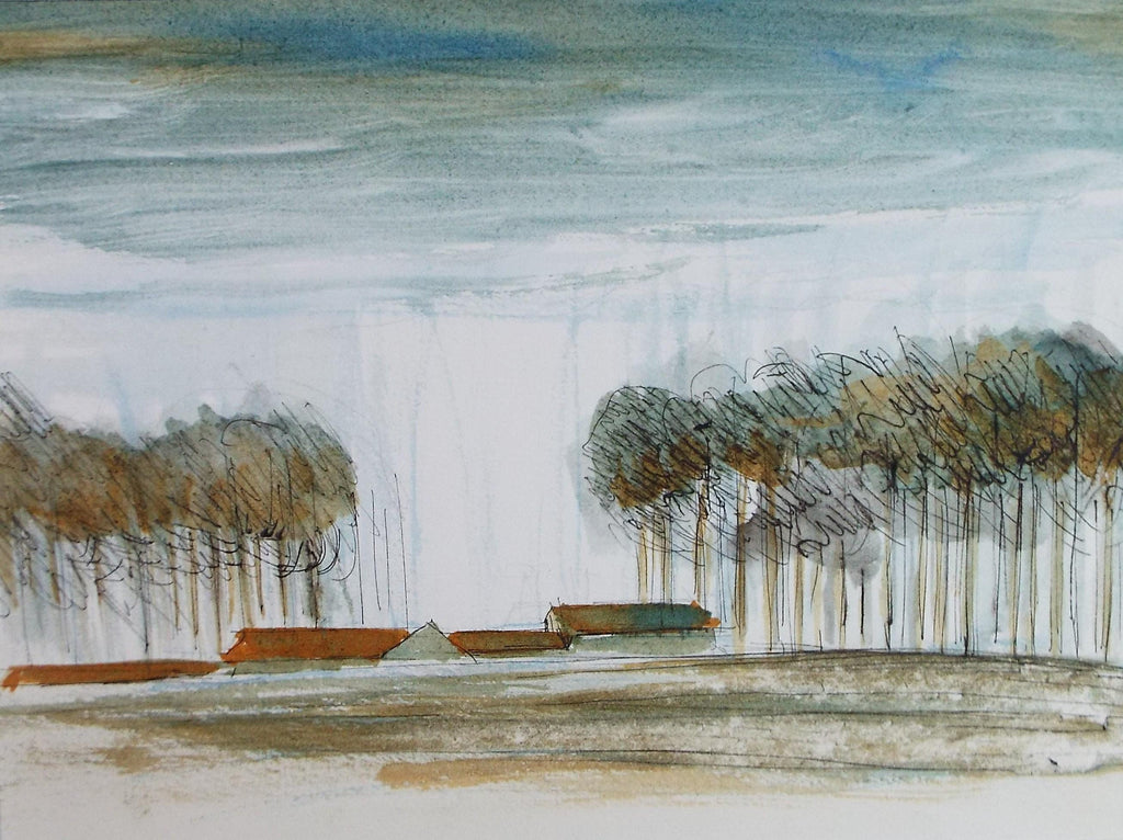 Original Watercolour, 'Farm buildings with trees',James Knight,circa 1980's
