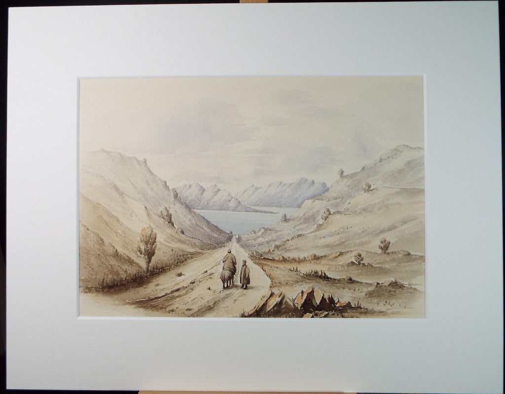 Original Watercolour, 'Figures on a Mountain Pass', Dated 1844, Artist Unknown