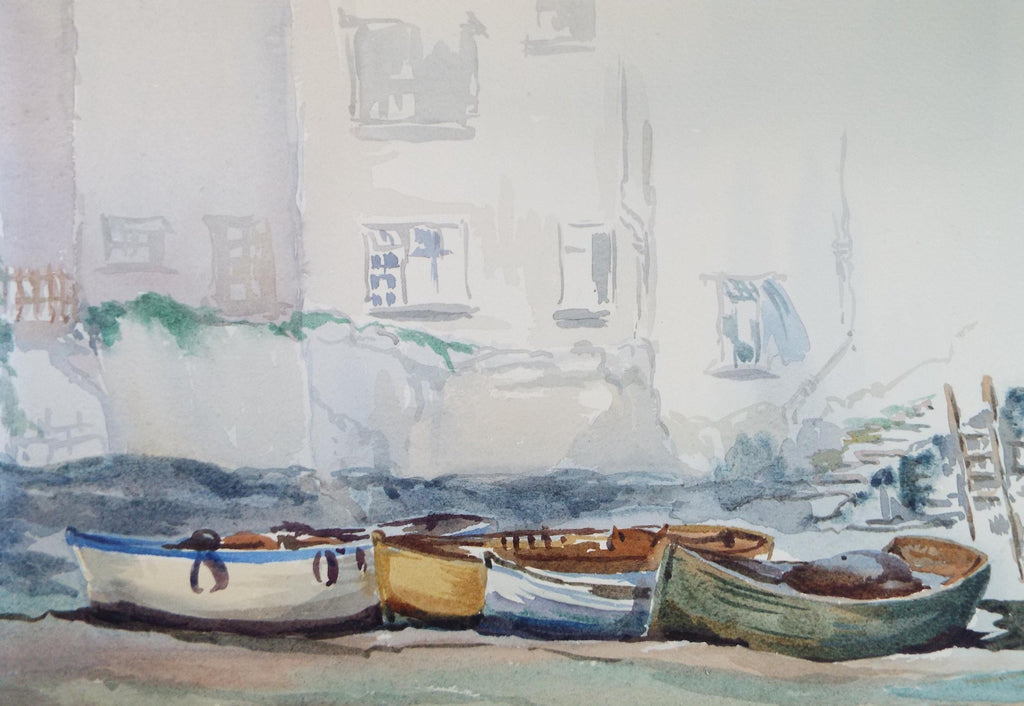 Original Watercolour, 'Fishing Harbour', Gwen Rayner, c1970's