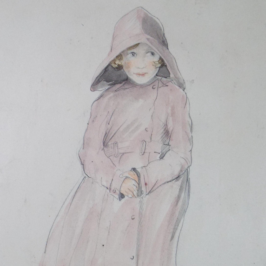 Original Watercolour, 'Girl in a Raincoat', circa 1930's, Artist Unknown