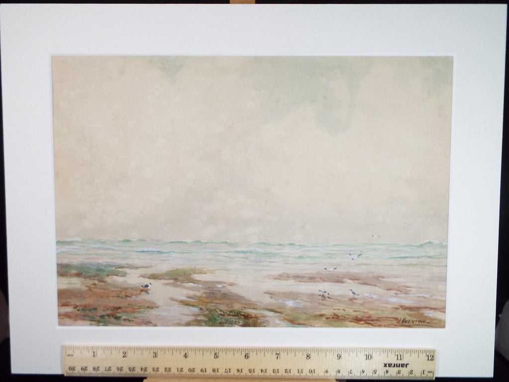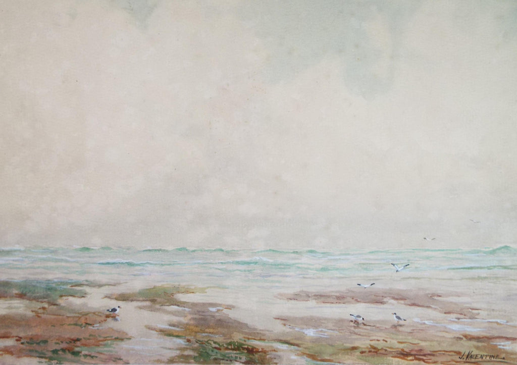 Original Watercolour, 'Gulls on the Shore', Circa 1930's, J Valantine