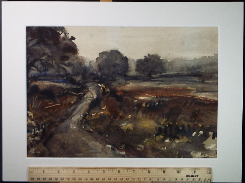 Original Watercolour, 'Track through heathland', Circa 1990's, Unknown artist