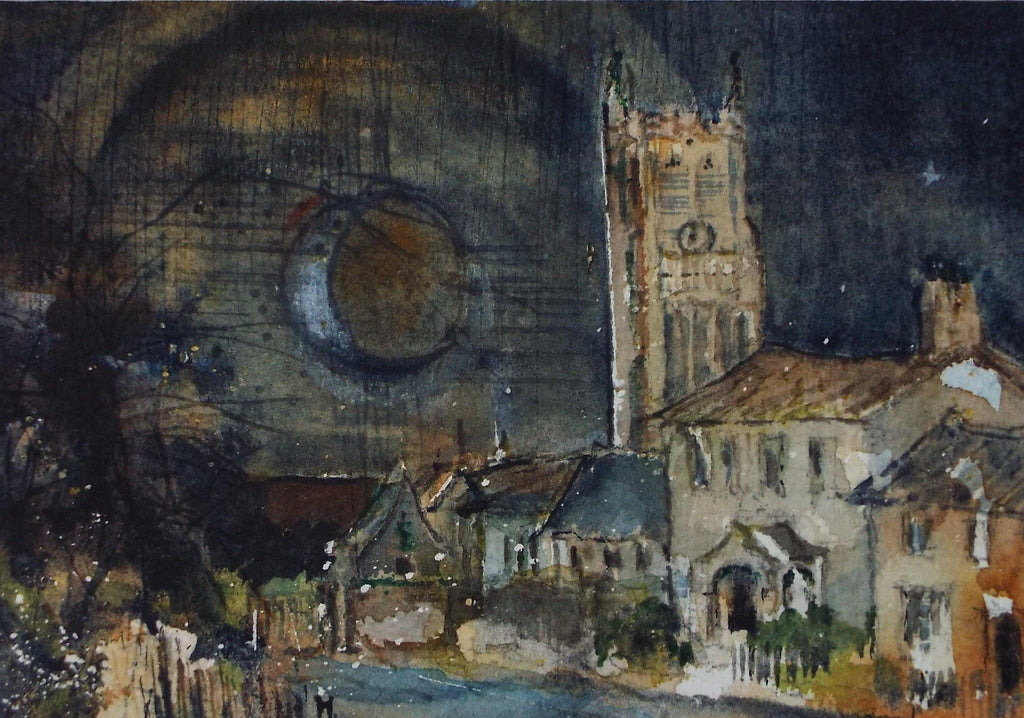 Original watercolour, 'Highstreet', Artist unknown, circa 1990's