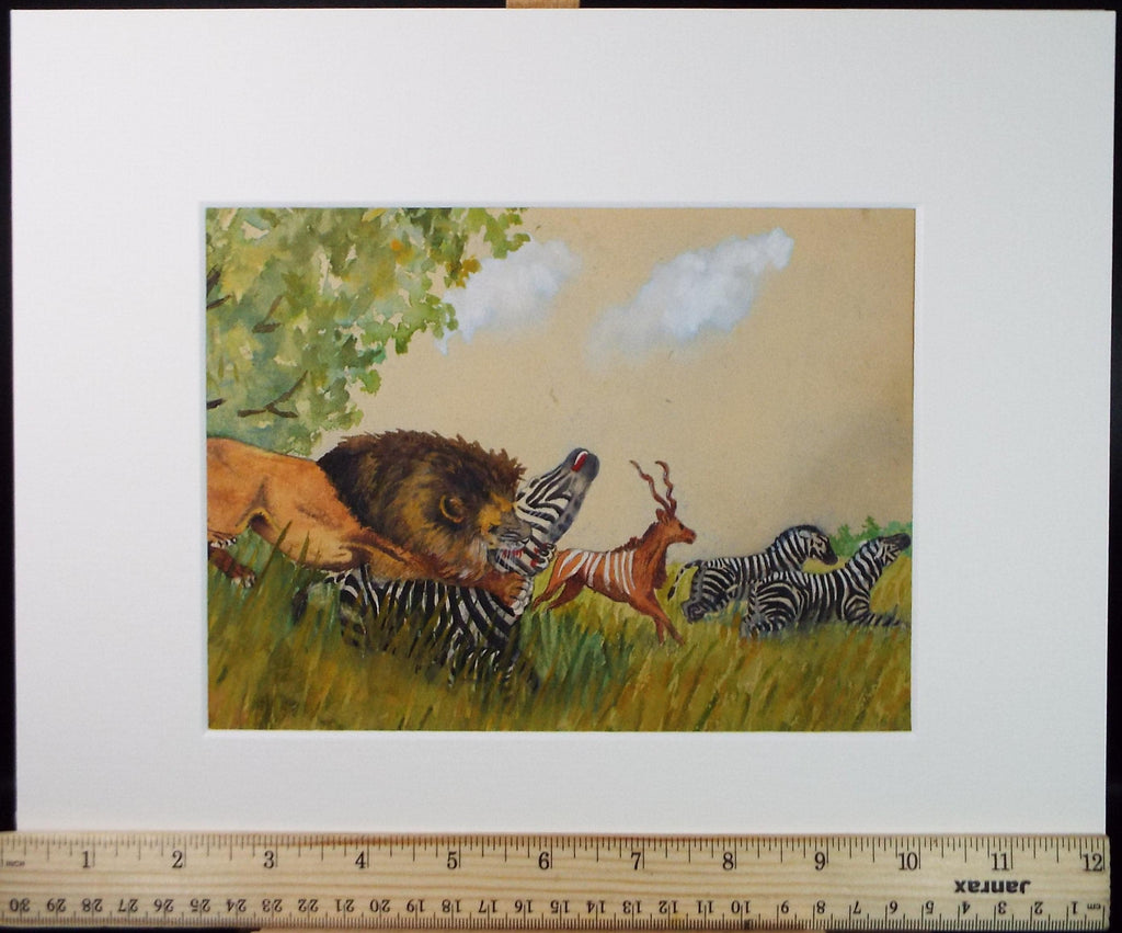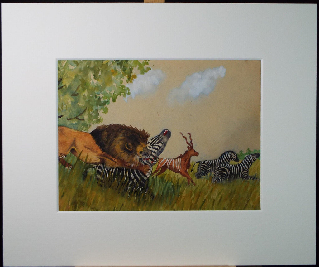 Original Watercolour, 'Hunt on the Savanna', Circa 1920's, Artist Unknown