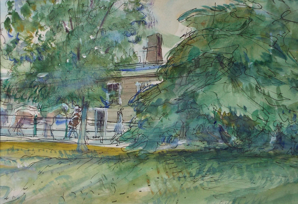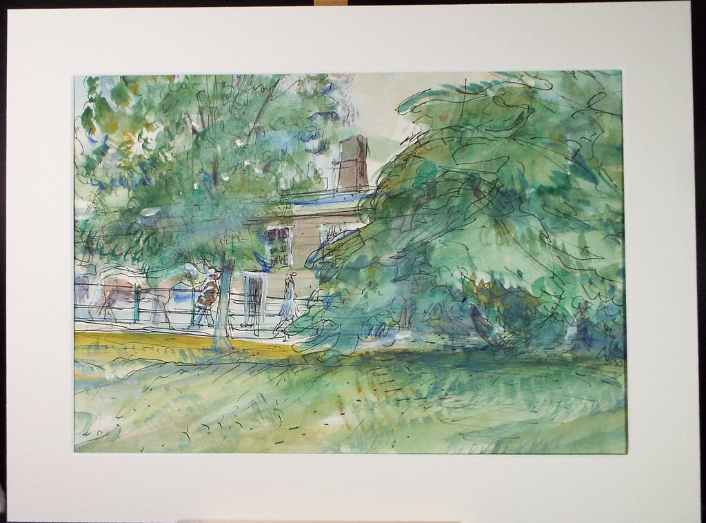 Original Watercolour & Ink, 'At the Stables', John Gilbey Bowes (1929-2011), Circa 1990's