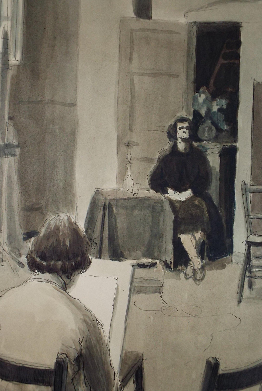 Original Watercolour & Ink 'Drawing Class', Circa 1950's, Pauline Plummer (b 1933)