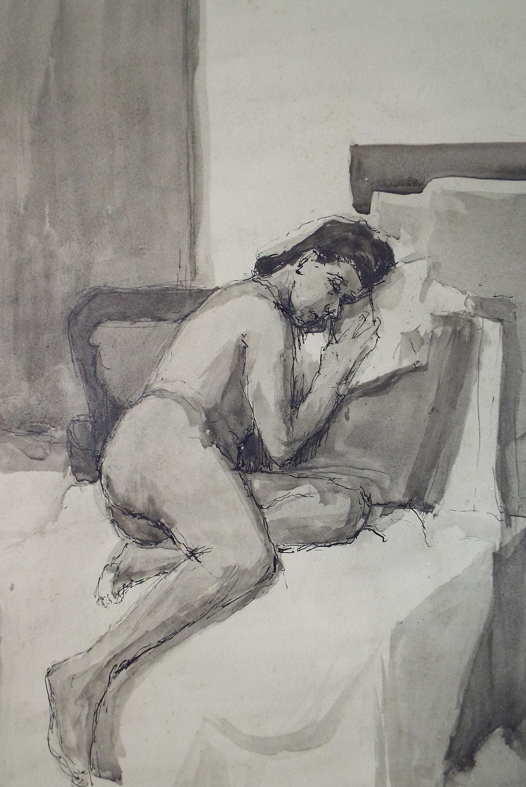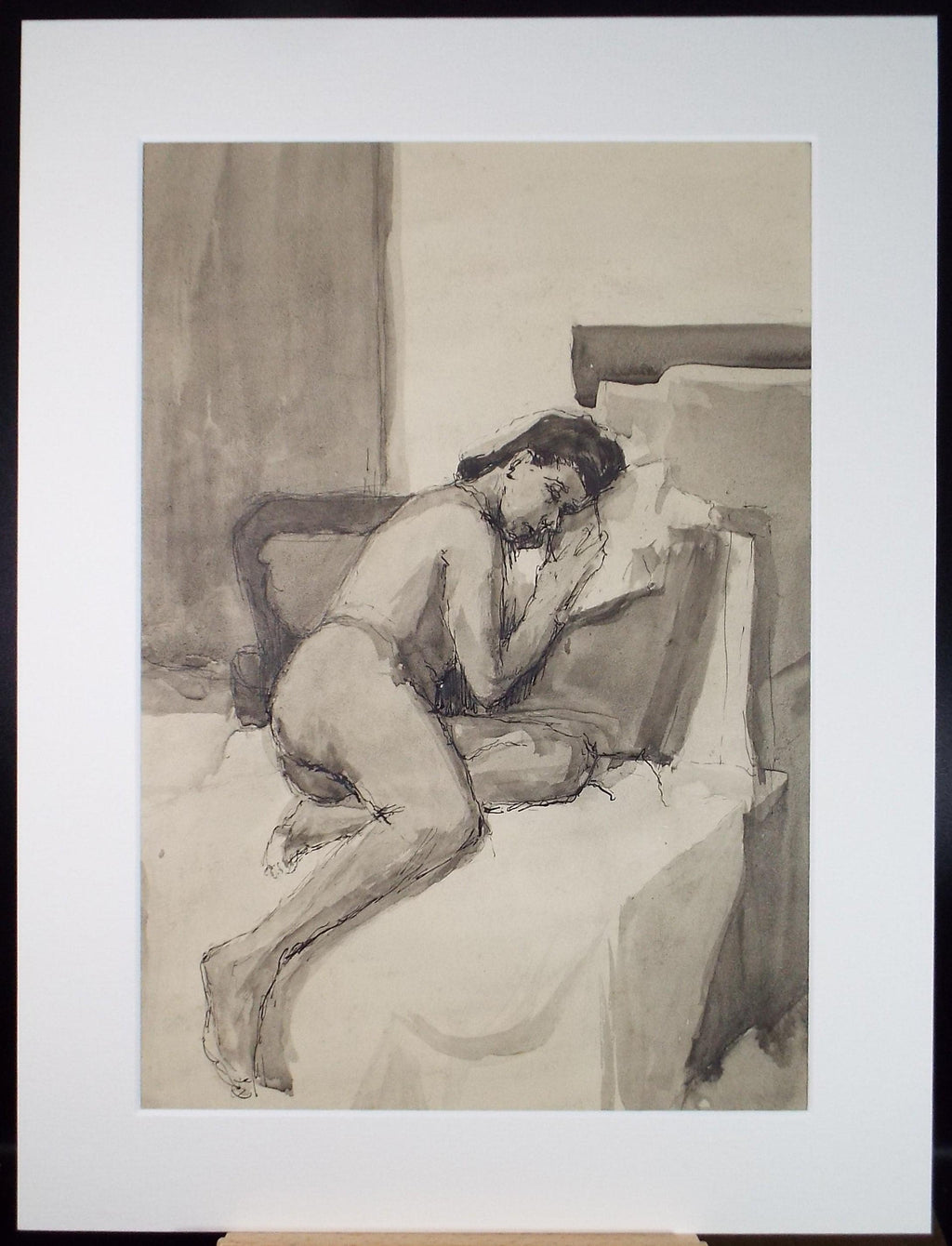 Original Watercolour & Ink ,'Sleeping Female Nude', Circa 1950's, Pauline Plummer (b1933)