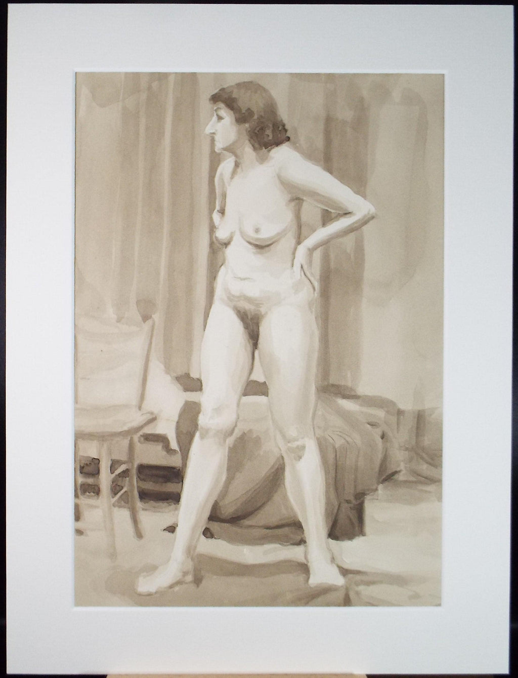 Original Watercolour & Ink ,'Standing female nude', Circa 1950's, Pauline Plummer (b 1933)