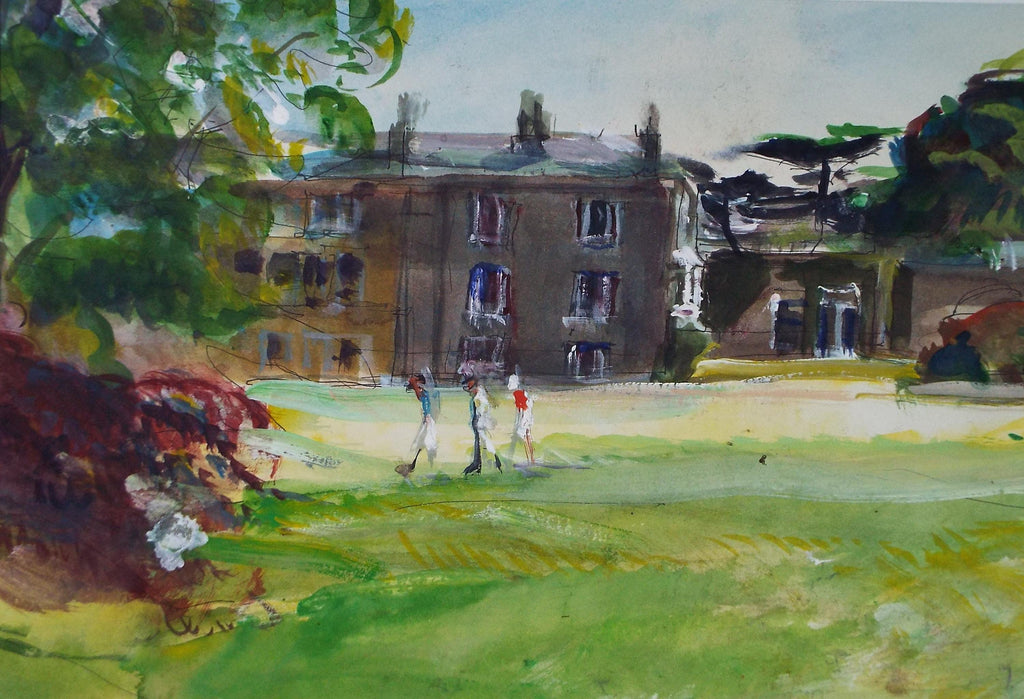 Original Watercolour & Ink, 'Stately home with figures', John Gilbey Bowes (1929-2011), Circa 1990's
