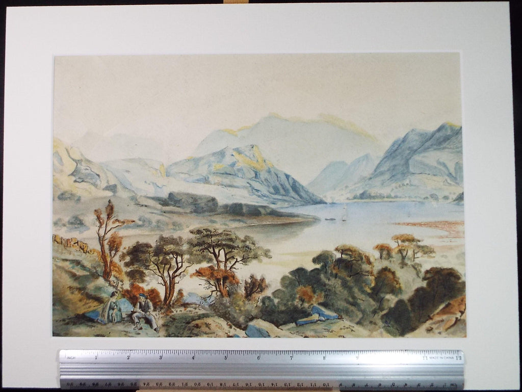Original Watercolour, 'Lake with figures', Late 19th Century, Artist unknown