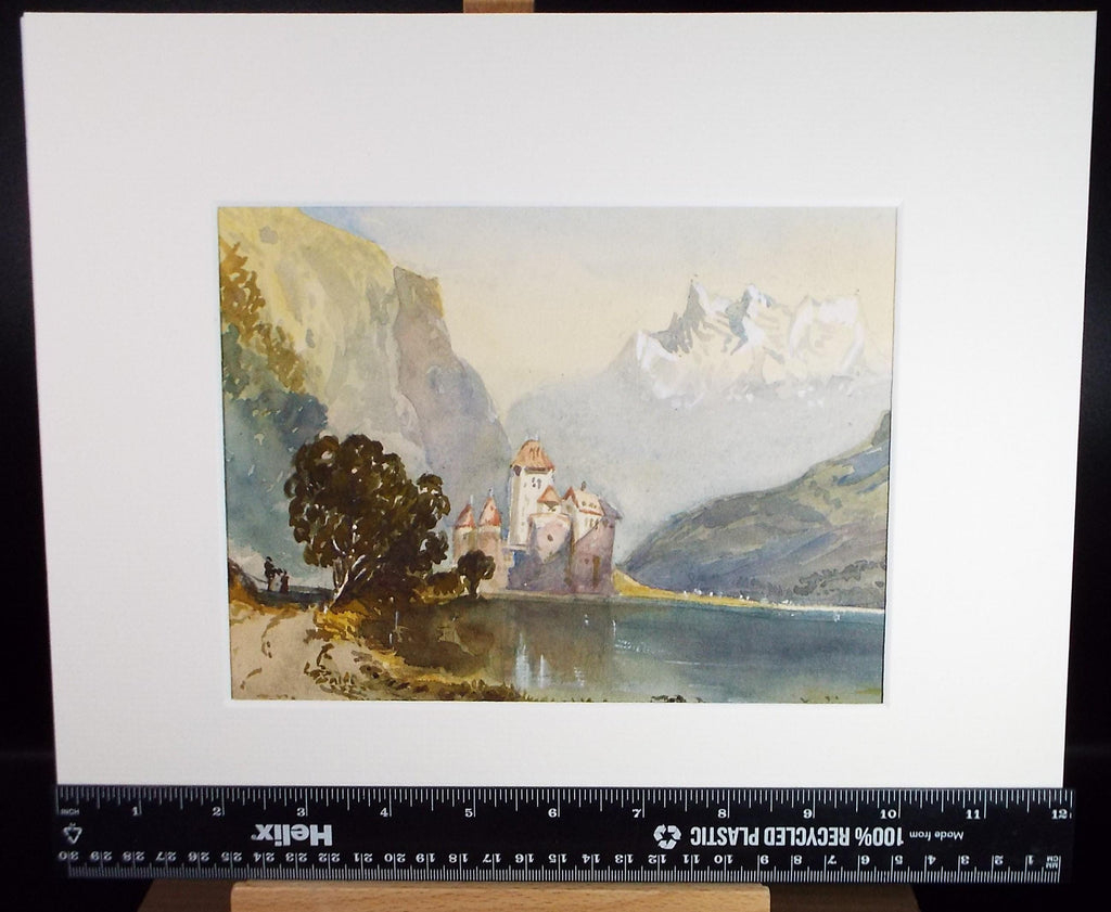 Original Watercolour, late 19th Century , 'Castle on the lake ', Artist Unknown