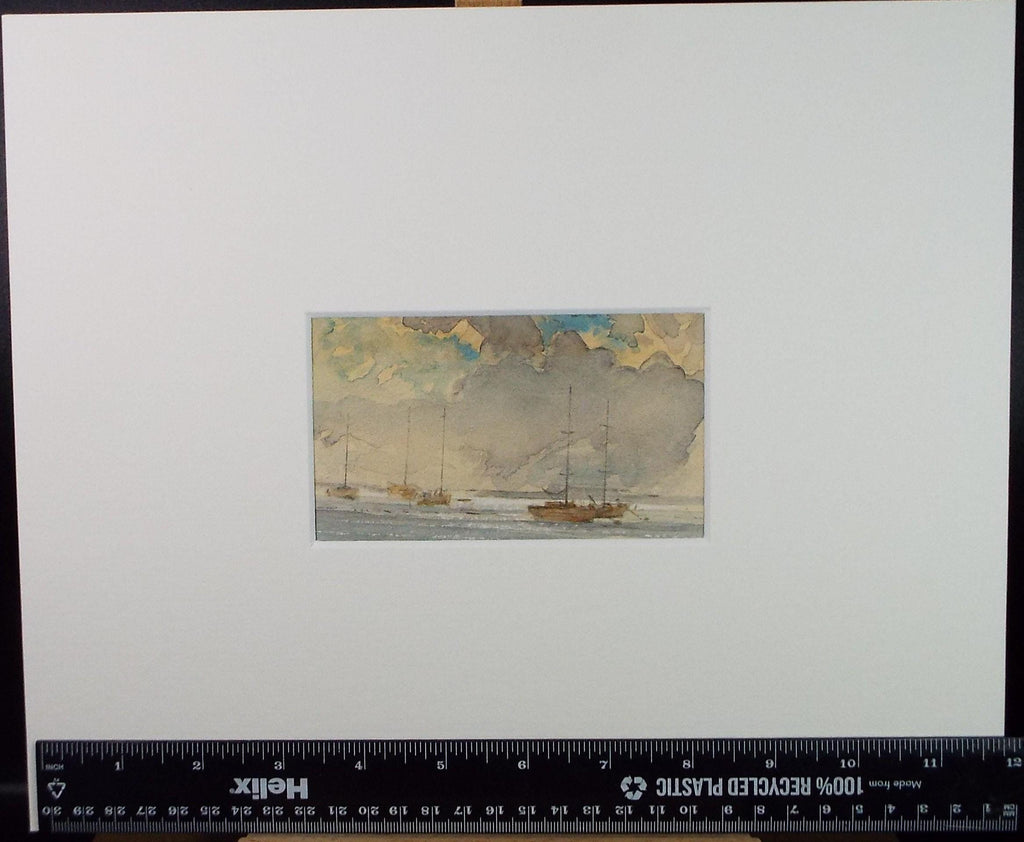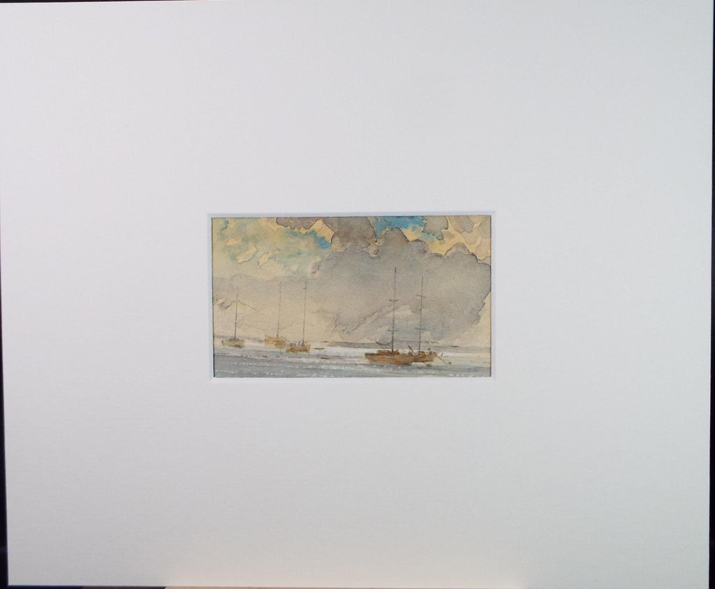 Original Watercolour, 'Moored boats under a stormy sky', Dated 1985, H F Hart