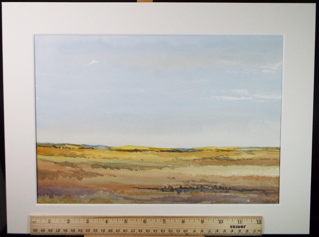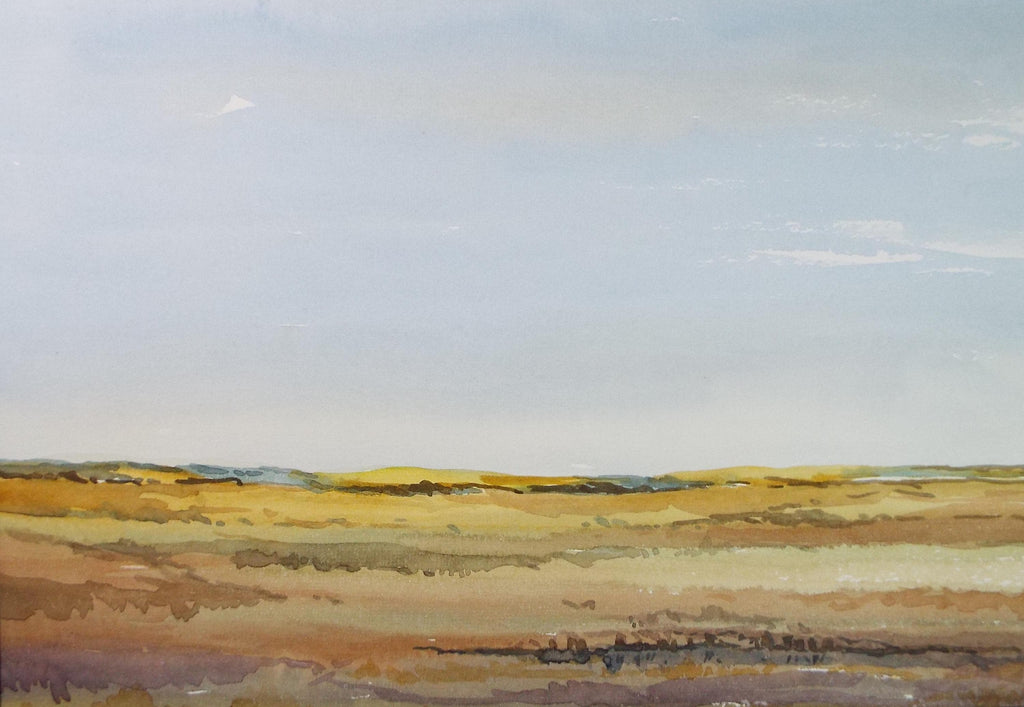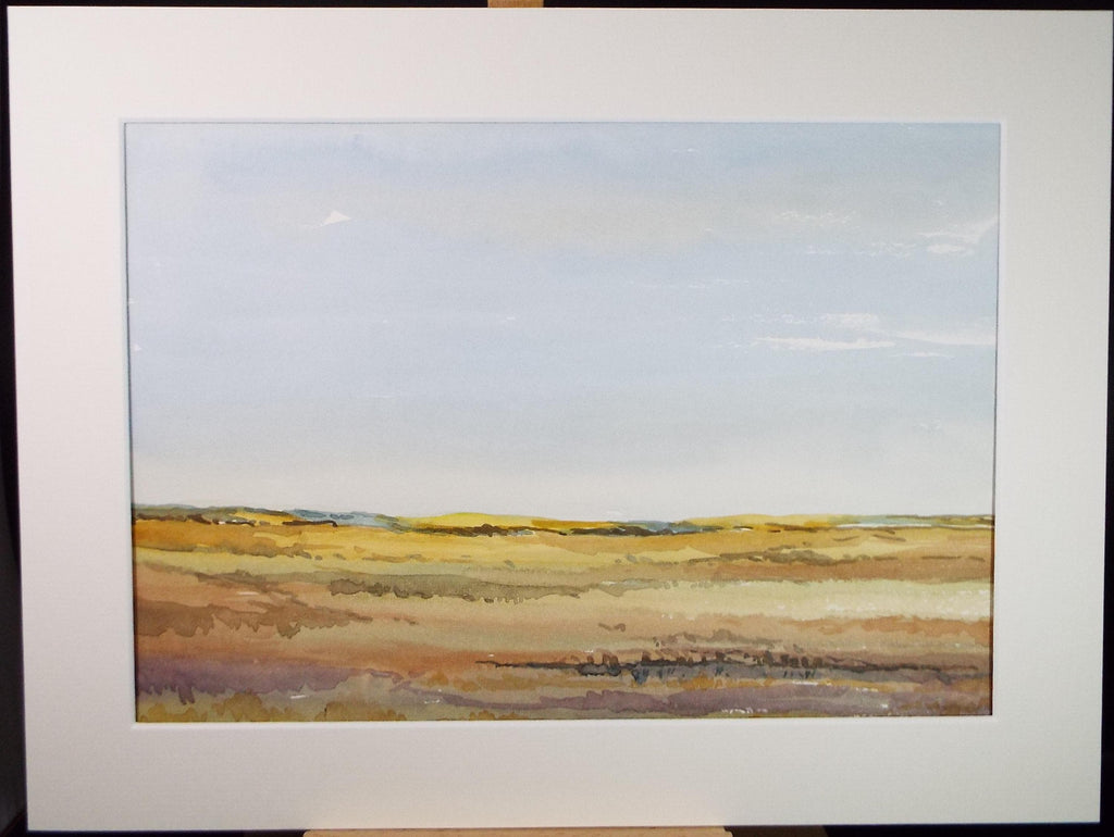 Original Watercolour, 'Moorland under a blue sky', Gwen Rayner, c1970's