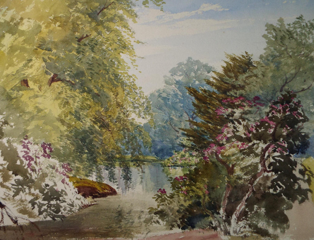 Original Watercolour on Paper, 'Lake with Trees', Circa 1920's , Artist Unknown