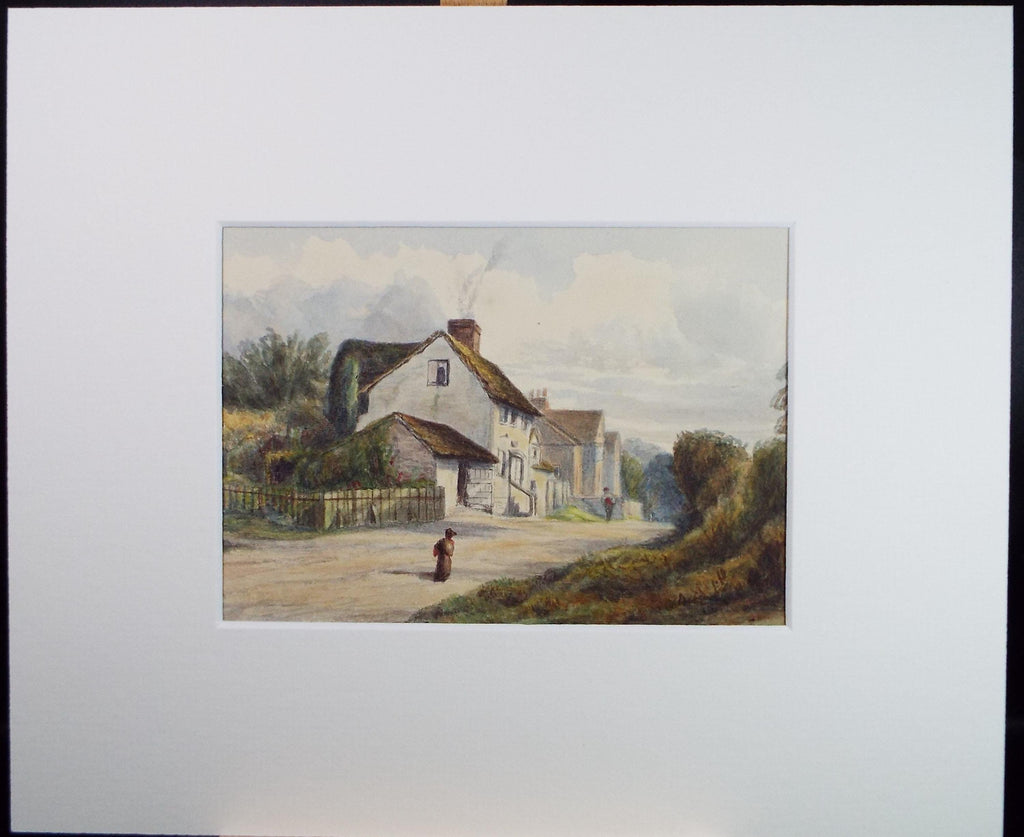 Original Watercolour on Paper, 'Street with Figures, Circa 1890