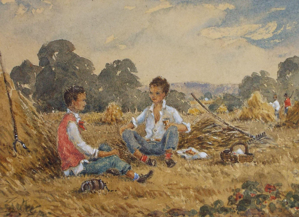 Original Watercolour on Paper,'Harvest Time', Circa 1950's , Artist Unknown