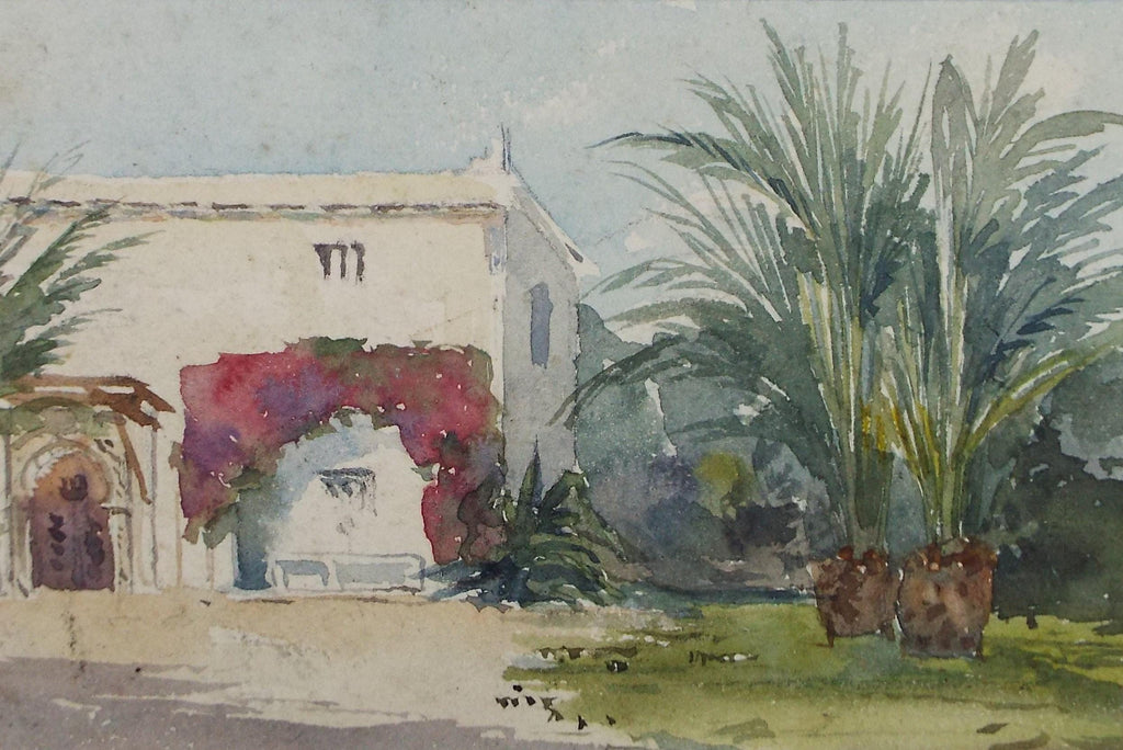 Original Watercolour, 'Spanish Villa', circa 1890's, Artist unknown