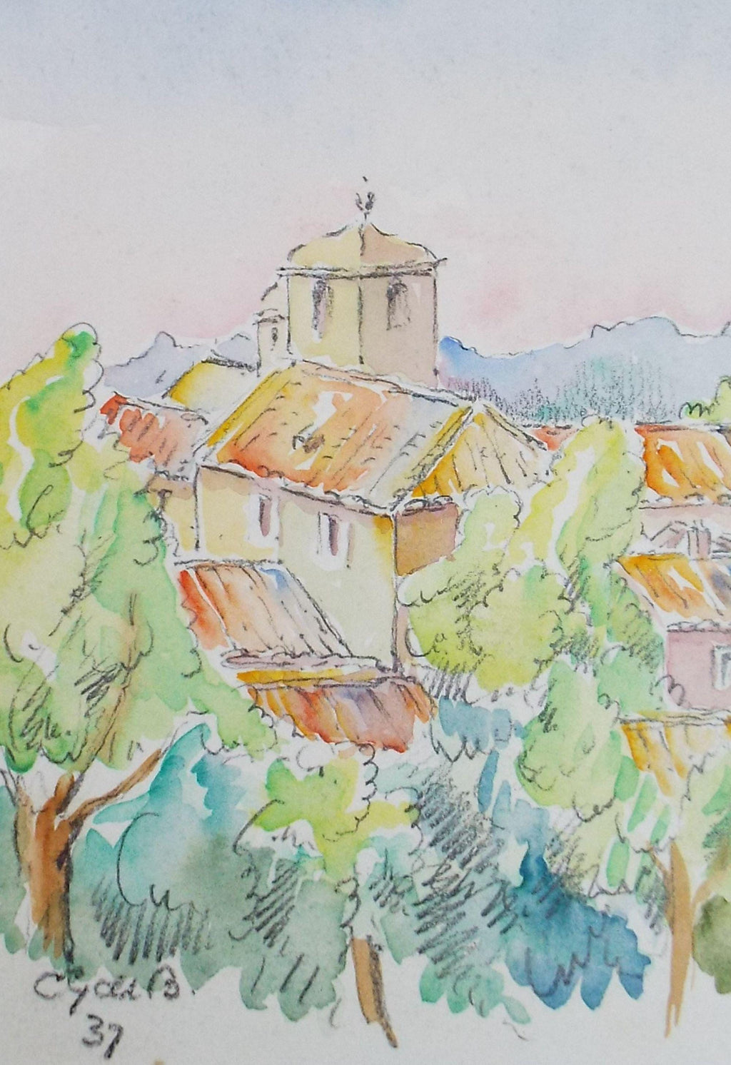 Original Watercolour & Pencil, 'Nimes', Cicely Glyn de Beers (1891-1973), Dated 1937