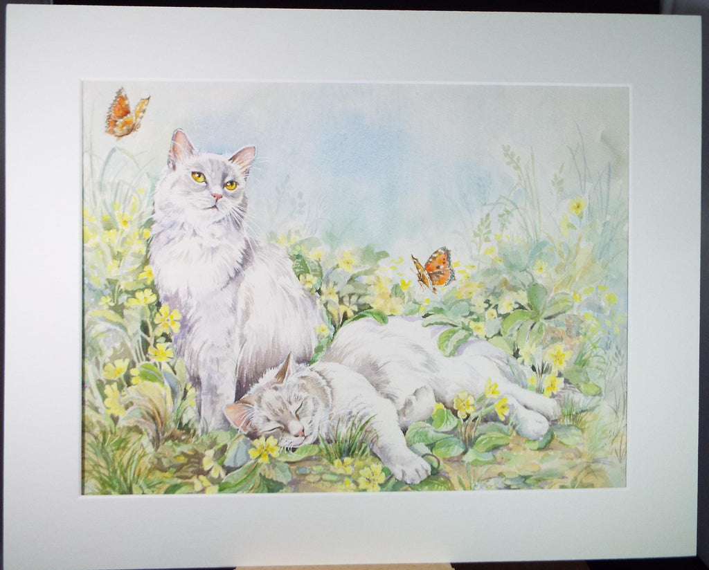 Mounted ready for framing on white card and matching backing card with cellophane protective wrapping