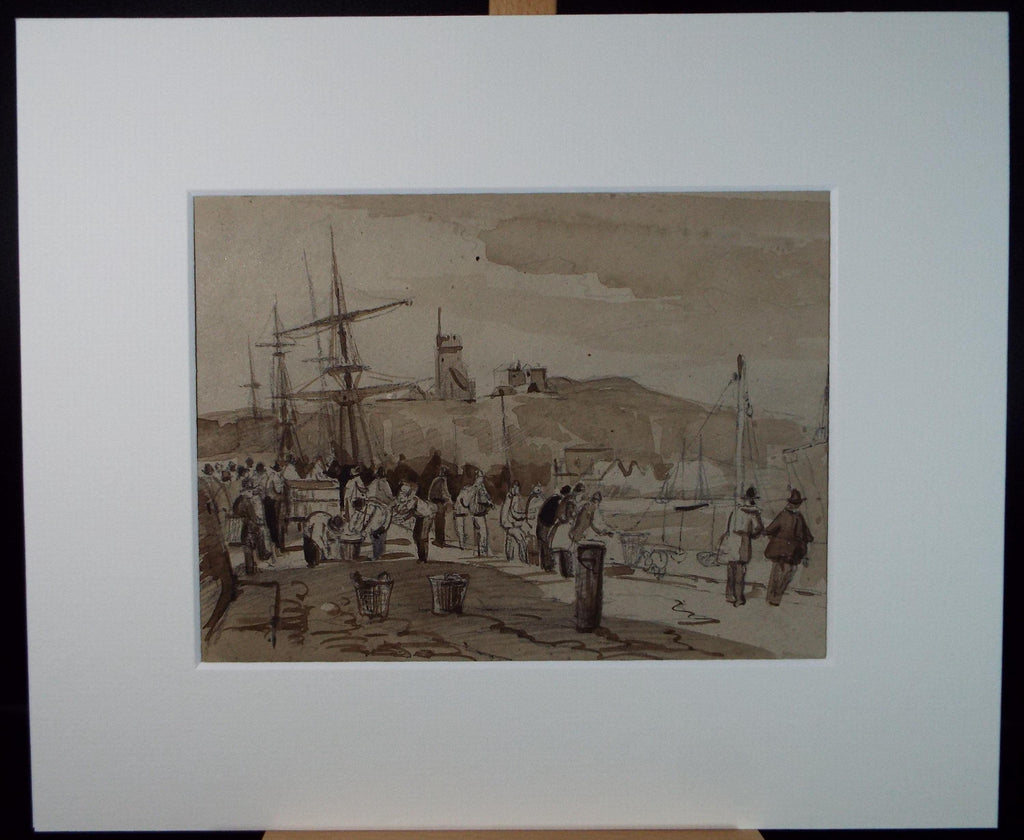 Original Watercolour, 'Quayside with Figures',Late 19th Century, artist Unknown