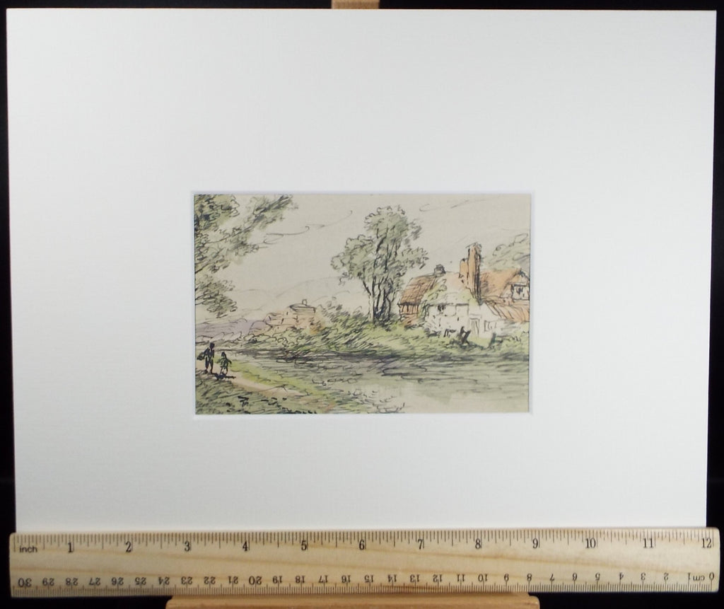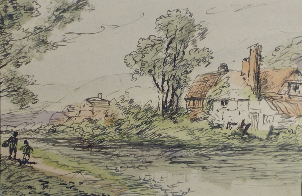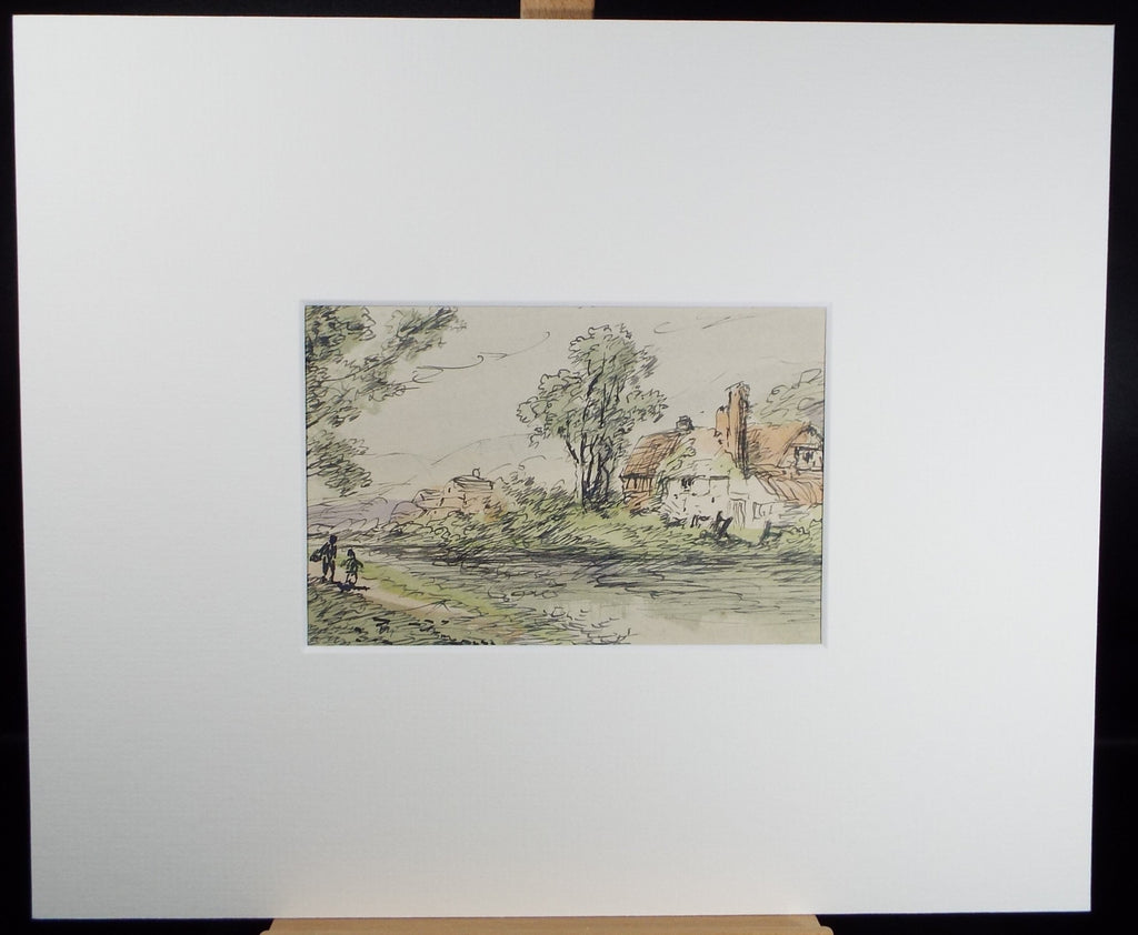 Original Watercolour, 'Riverside Cottage with Figures', Circa 1920's, W. Stone