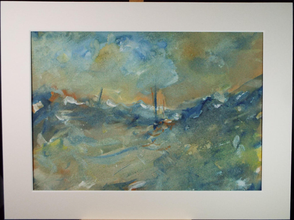 Original Watercolour 'Stormy sea', unknown artist, circa 1970's