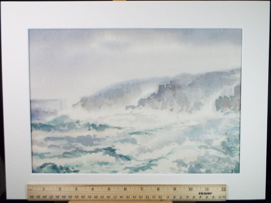 Original Watercolour, 'Stormy Sea', Gwen Rayner, c1970's
