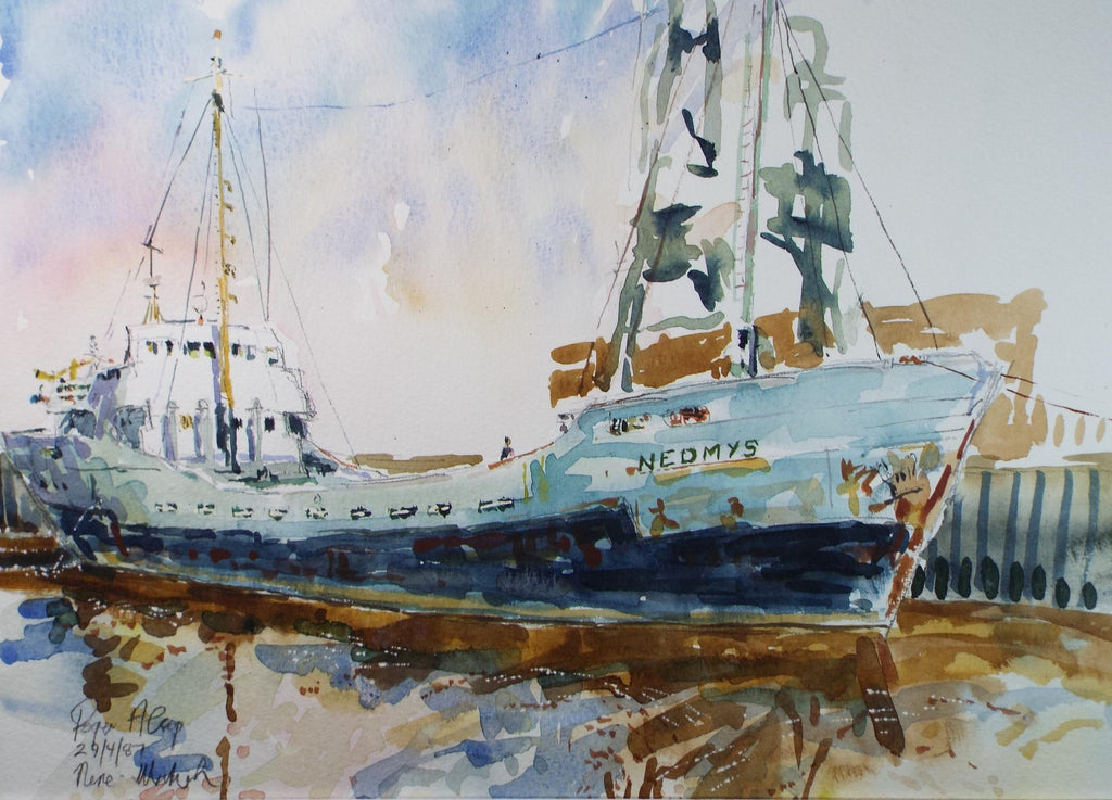 Original Watercolour,'Freighter Nedmys', Roger Alsop, dated 1987