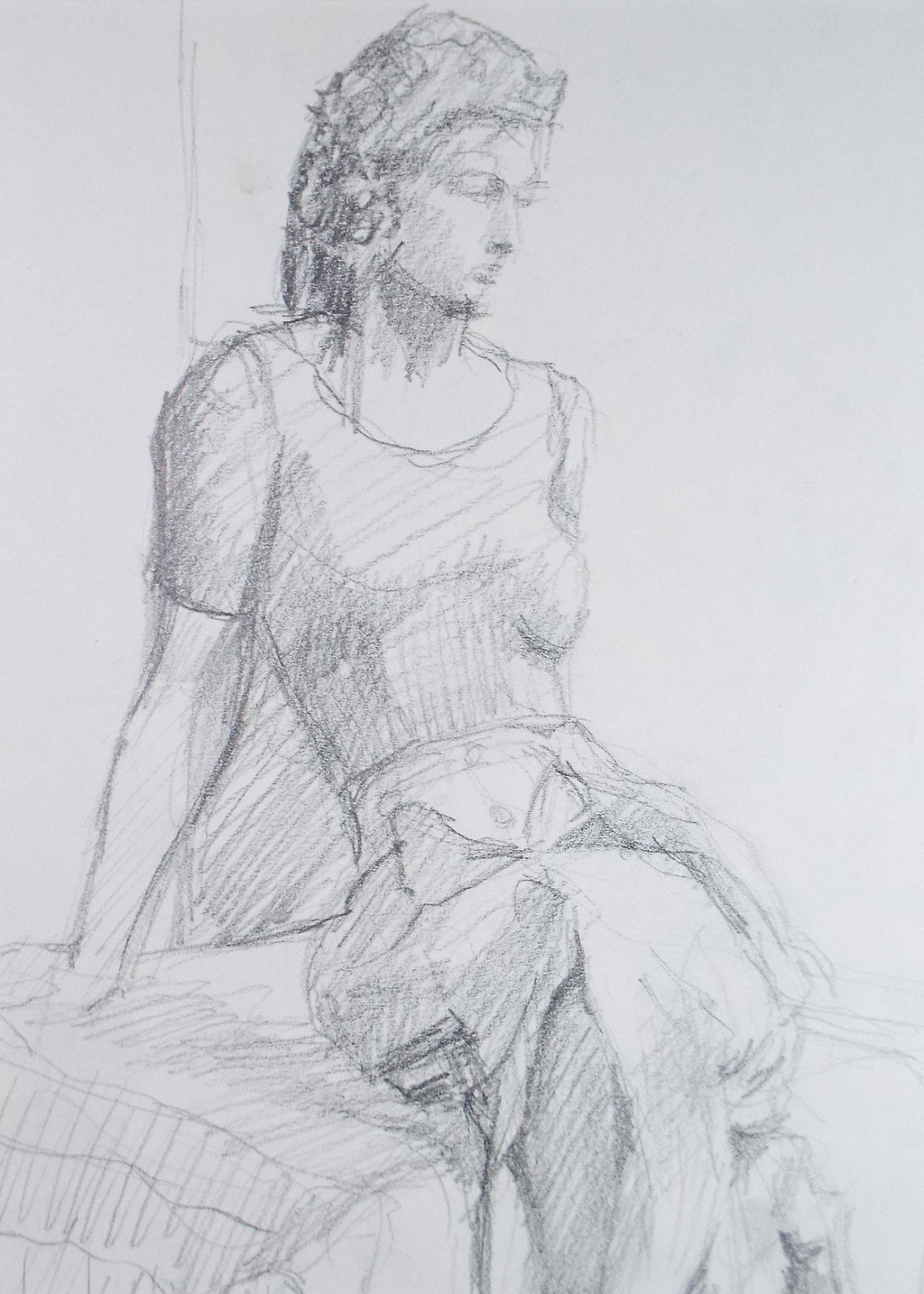 Pauline Plummer Pencil Drawing: study of a woman, 1990s, Mounted