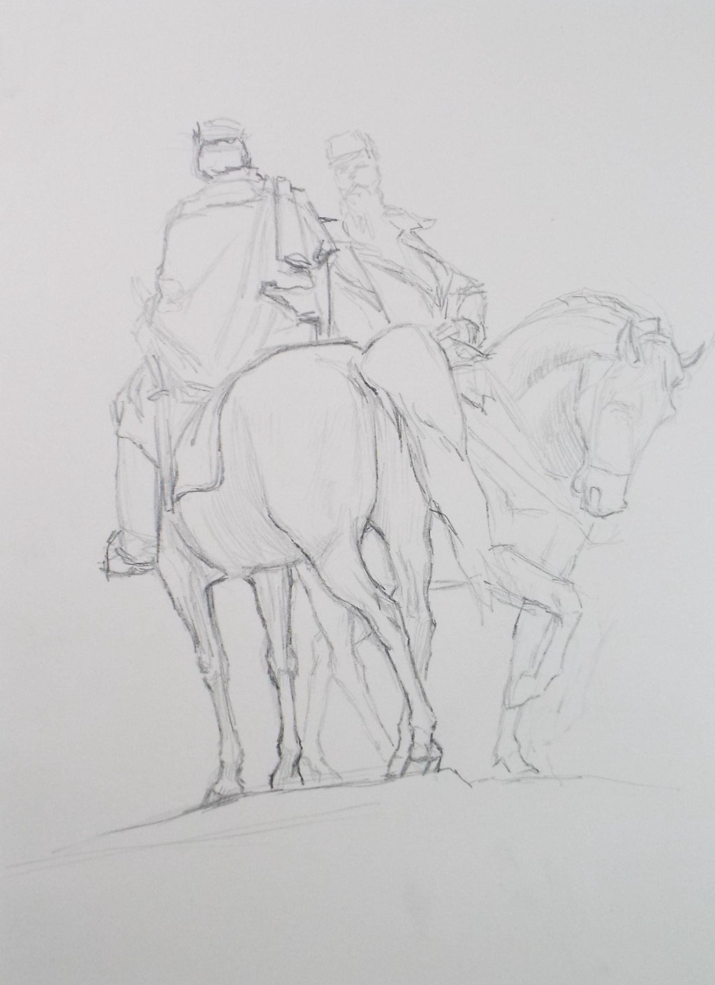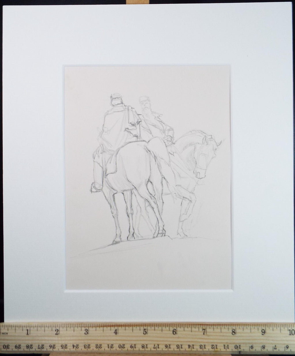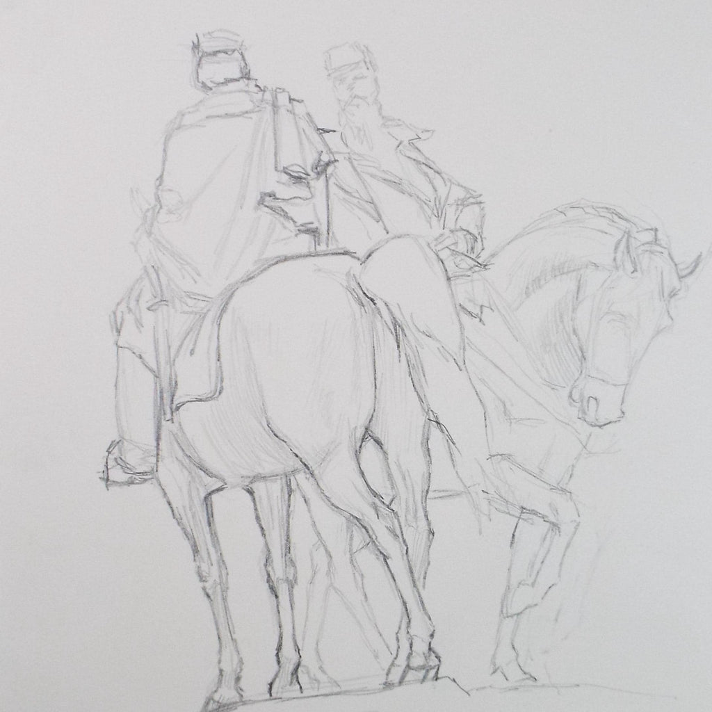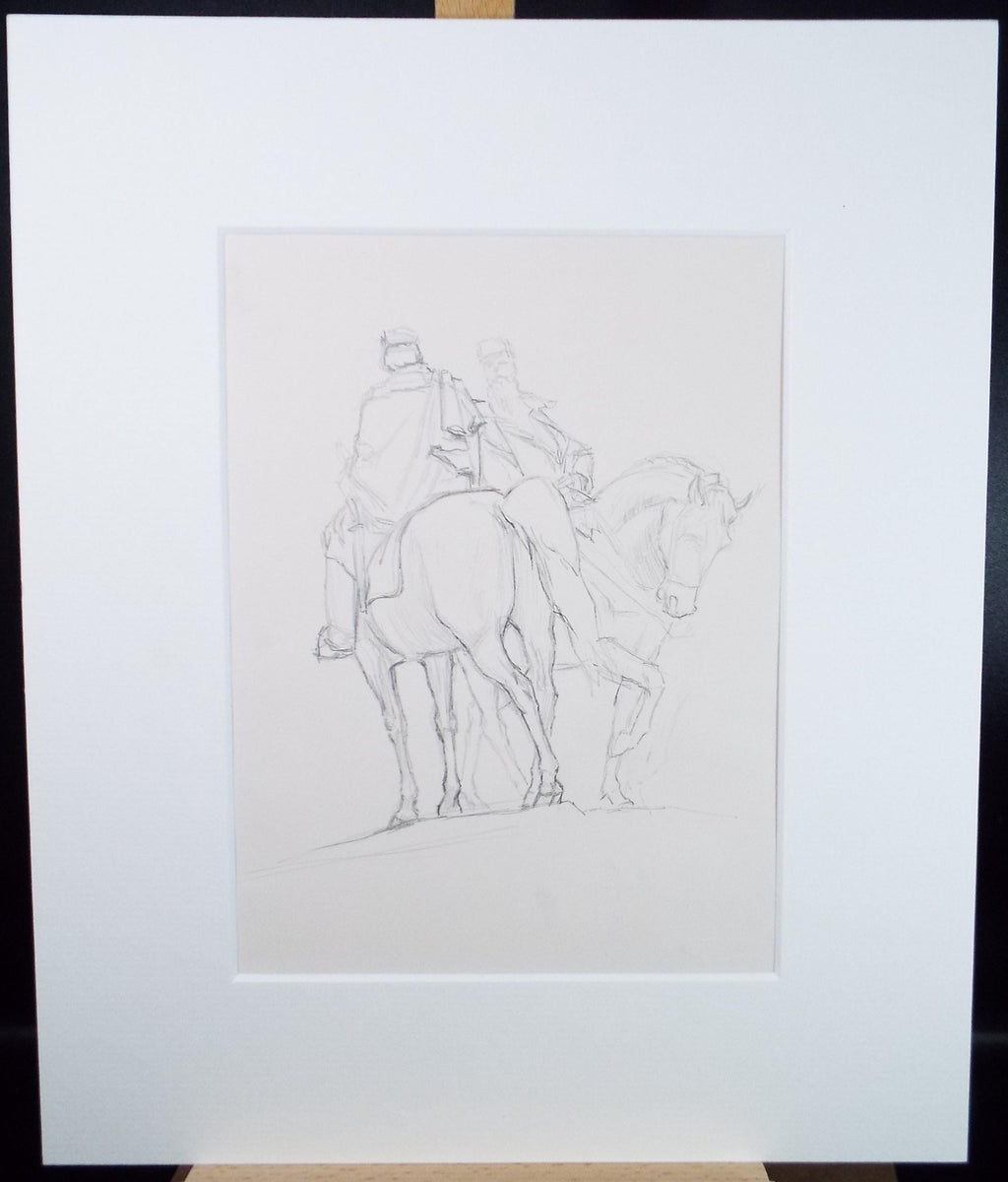 Original Pencil Drawing,'Soldiers on Horseback', Edmund Caswell (1938-1996), circa 1980's