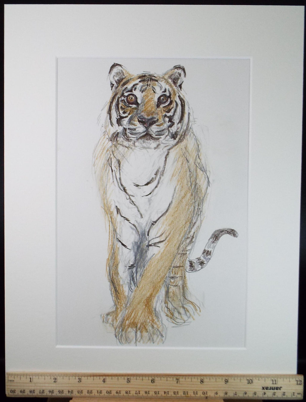 Pencil drawing 'Tiger', Pauline Plummer (b1933), Circa 1990's