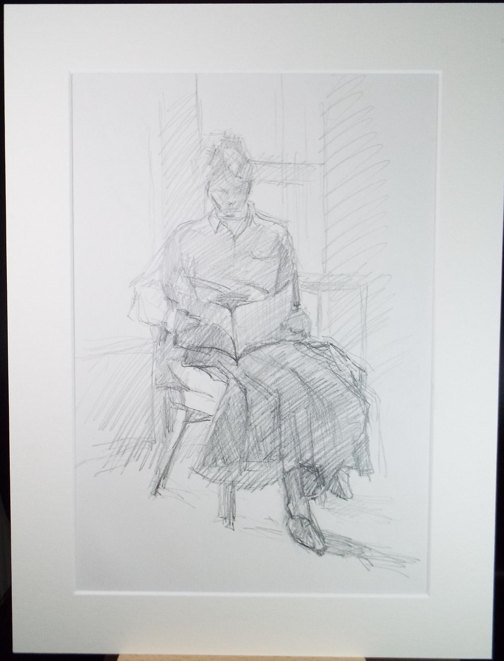 Pencil drawing 'Woman Reading', Pauline Plummer (b1933), Circa 1990's