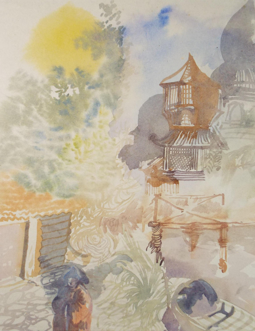 Original Watercolour, 'Japanese Garden' c1950's - William D Clyne (1922-1981)
