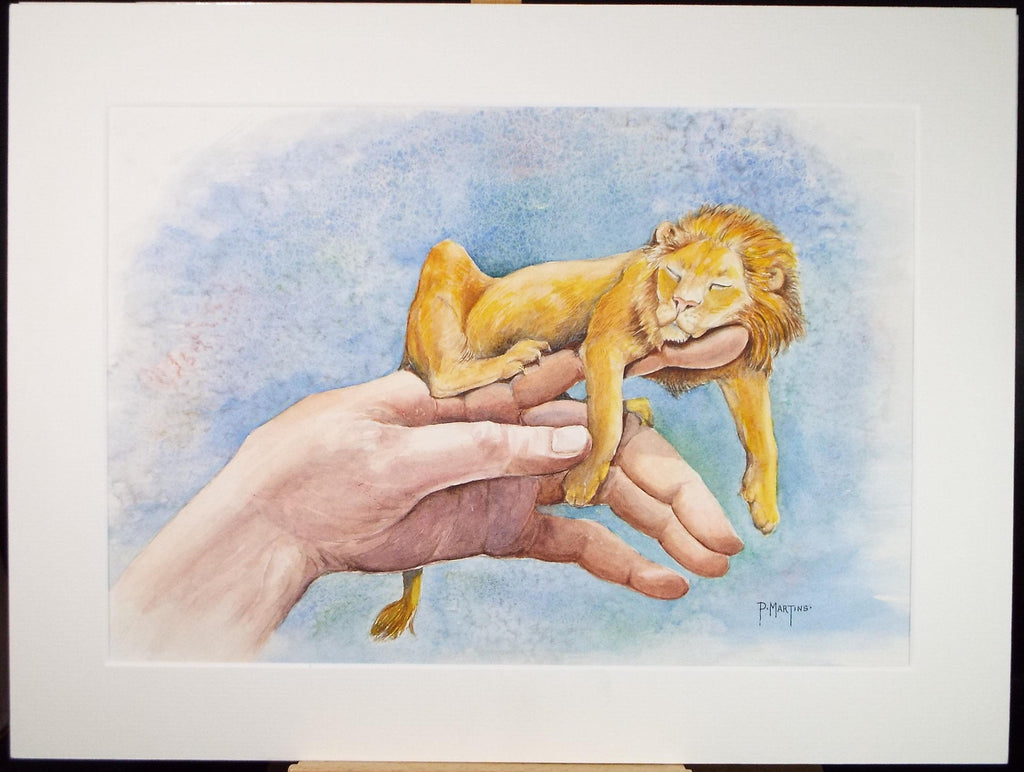 Watercolour painting, 'Little Lion', P Martins s.o.f.a., Dated 2002